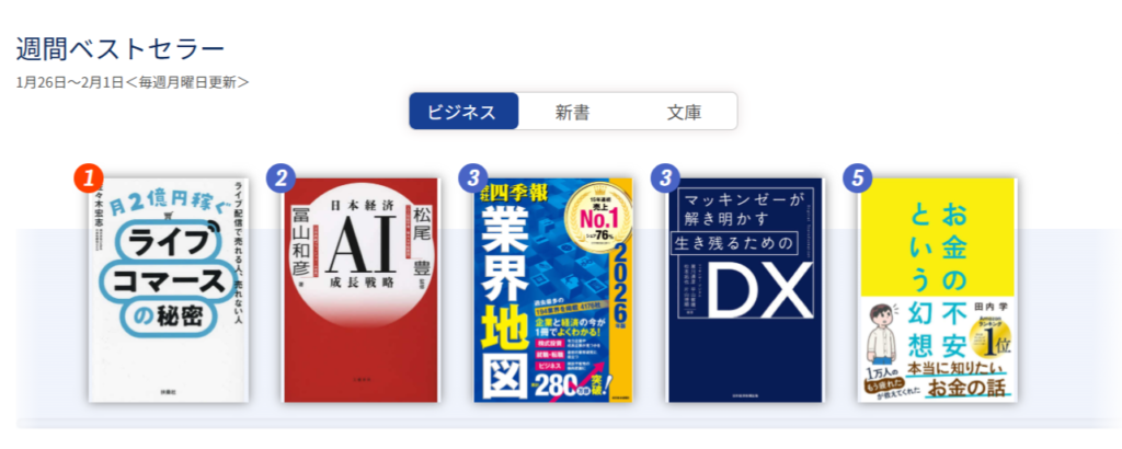 1.紀伊國屋書店 大手町ビル店 ビジネスジャンル1位(1/26~2/1計上)